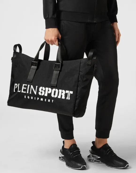 Stay Organized and Stylish with the PLEIN SPORT Duffel Bag This PLEIN SPORT duffel bag is the perfect companion for your active lifestyle. Made with durable materials, this duffel bag features a spacious main compartment and multiple pockets for all your essentials. The bag also comes with a stylish logo, adding a touch of flair to your gym or travel gear.